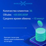 • Статистика нашего обменного пункта за сегодня Количество клиентов: 36 Объём: ~69.000.000₽ Среднее время обмена: ~10 минут